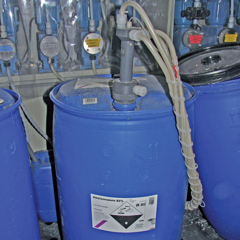 - Gebinde mitsamt der Flüssigkeitsreste an den Hersteller zurückgegeben; das Entleeren der Kanister entfällt.