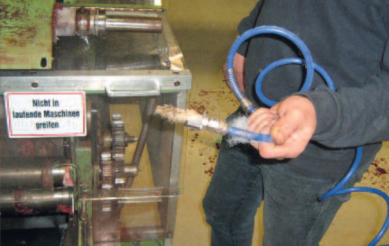 Kurz vor Weihnachten 2011 wurde die jahrelange falsche Gewohnheit einem Maschinenbediener an einer Krempelanlage zum Verhängnis. Im Auslaufen der Maschine wollte er bei geöffnetem Verdeck mit dem Luftschlauch Verunreinigungen an den Arbeitsorganen ausblasen.