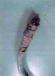 Die beiden Monteure fuhren zu der Trafostation, an der sie den Anschlusspunkt des Kunden vermuteten. Das entsprechende Versorgungskabel wurde freigeschaltet. Anschließend fuhren sie zur Störungsstelle. Auch hier sollte zunächst die Spannungsfreiheit des betroffenen Niederspannungskabels festgestellt werden. Die beiden Monteure erkannten durch die beschädigte Ummantelung des Kabels noch den alten Farbcode (rot-schwarz-blau), der identisch war mit dem Farbcode des freigeschalteten Kabels in der Trafostation. Sie waren sich deshalb absolut sicher, dass das richtige Kabel freigeschaltet war. In vermeintlicher Sicherheit zog einer der Monteure das beschädigte Niederspannungskabel heraus. Lediglich durch das Bewegen des Kabels kam es schon zu einem inneren Kurzschluss, der dann einen Lichtbogen auslöste. Der verunglückte Monteur erlitt schwere Verbrennungen an der Hand.