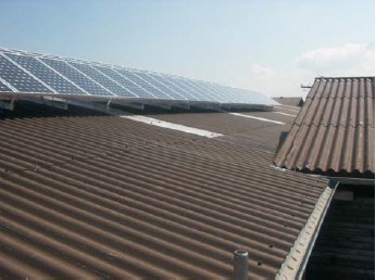 Mehrere Elektriker hatten den Auftrag, eine Photovoltaikanlage auf einer Reithalle zu installieren. Das Dach der Reithalle war mit Wellplatten eingedeckt.