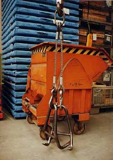 Blechhaken stellen eine formschlüssige Verbindung zwischen Last und Anschlagmittel her, sind aber nicht gegen Abgleiten von der Last gesichert. Wesentlich sicherer lassen sich derartige Transporte mit Blechklemmen durchführen, die sich in die Bleche krallen und nicht so leicht abgleiten können. Außerdem wäre ein 4-Stranggehänge bzw. eine Traverse mit 4 Blechklemmen dem eingesetzten 2-Stranggehänge vorzuziehen.