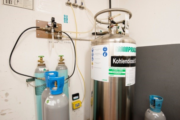 In der Regel wird Kohlendioxid für Getränkeschankanlagen eingesetzt. Kohlendioxid hat eine höhere Dichte als Luft ("schwerer als Luft"). Unkontrolliert austretendes Gas sinkt nach unten und es entsteht Erstickungsgefahr.
