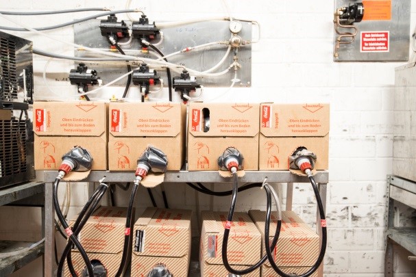 Die Postmix-Verpackungen beinhalten in der Regel 10 l oder 20 l Konzentrat. Bei der Handhabung und dem Transport ist die Belastung der Mitarbeiter durch Heben und Tragen zu beurteilen. Um einer Erkrankung des Muskel-Skelett-Systems vorzubeugen, sind entsprechende Schutzmaßnahmen festzulegen und umzusetzen. Als Beispiel kann das Postmix-Regal mit einem entsprechenden Untergestell ausgestattet werden, um eine ergonomische Arbeitshöhe zu erreichen.