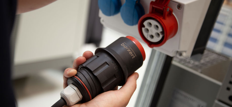 Um einen CEE-Stecker zu lösen, wird sehr viel Kraft benötigt. Während man viel Energie aufwenden muss, um an dem Stecker zu ziehen, löst er sich ab einem Punkt ruckartig. Das birgt insbesondere bei Arbeiten, die auf Leitern ausgeführt werden, große Gefahren. Die Nachwuchskräfte aus dem Ausbildungszentrum der Bürkert Werke haben deshalb einen Mechanismus entwickelt, der die Zug- in eine Drehbewegung ändert.
