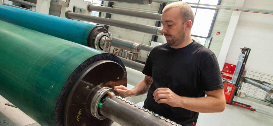 Bei Christiansen Print bewegen die Mitarbeitenden aus der Abteilung "Rüsten" jeden Tag mehrere Dutzend von Druckformen, die jeweils etwa 120 Kilo schwer sind. Bei dieser Tätigkeit wurden Rücken, Schultern und Handgelenke stark belastet. Um Abhilfe zu schaffen, haben die Mitarbeitenden eine Konstruktion erarbeitet, bei der die Druckformen auf Kugeln gelagert werden und somit den nötigen Kraftaufwand auf ein Minimum reduziert. Beim anschließenden Umbau der Anlagen packte dann der gesamte Betrieb mit an.