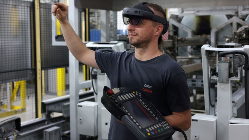 Azubipreis: Projektarbeit "Digiscout" ams OSRAM. Wenn bei der Arbeit an Maschinen und Anlagen Informationen fehlen, kann das gefährlich werden. Ein Azubi-Projekt demonstriert, wie digitale Technik Beschäftigten vor Ort helfen kann. Teil des Konzepts: VR-Brillen, Tablets und QR-Codes.