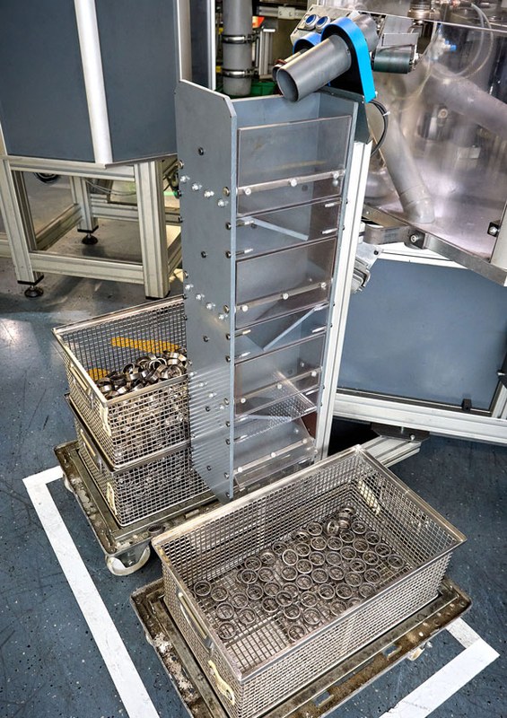 Auszeichnung: Rückenbeschwerden bei der Entnahme von befüllten Transportbehältern? An den Montageautomaten von JTEKT Bearings löst eine modifizierte Befüllstation das Problem, indem eine veränderbare Befüllhöhe es ermöglicht, dass nun jeweils nur noch leere Behälter auf bereits befüllte aufgesetzt werden müssen.
