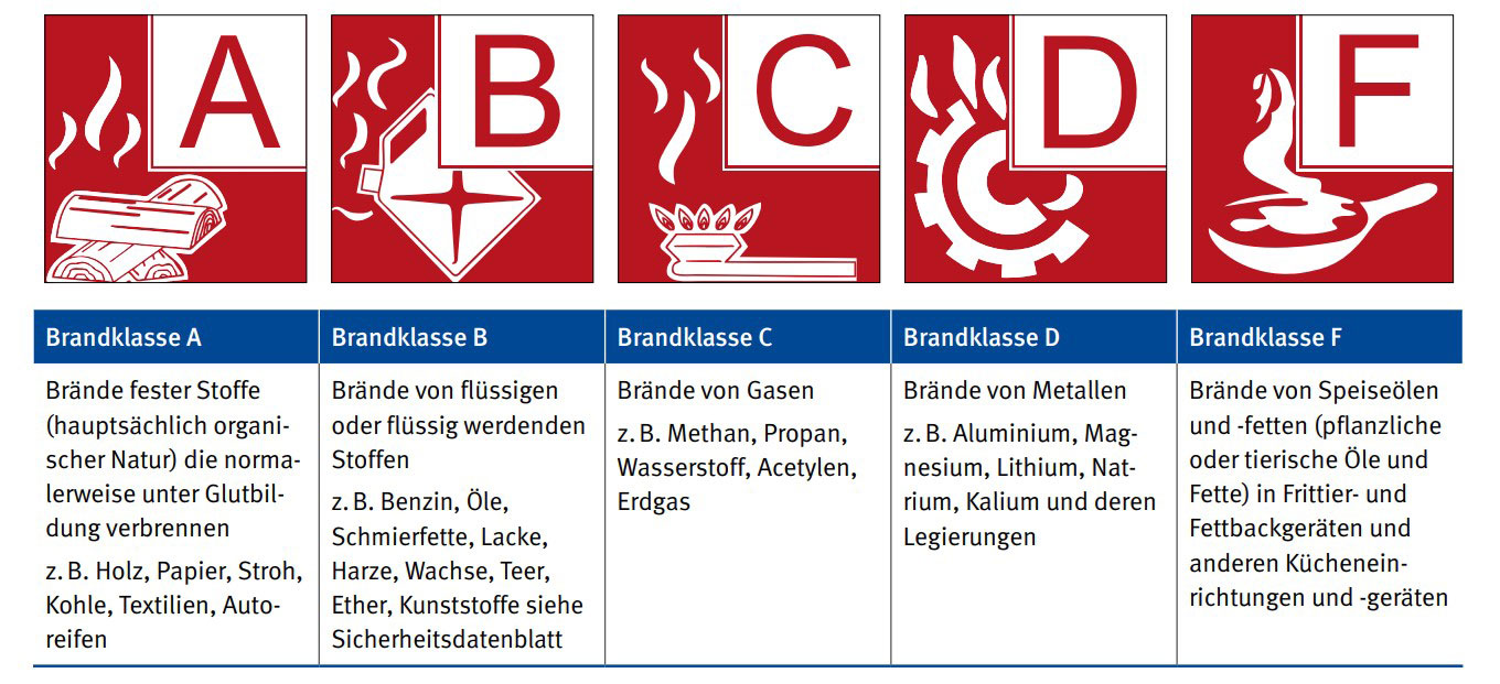 Alle Gefahrstoffe können aufgrund ihrer physikalischen Eigenschaften einer Brandklasse gemäß DIN EN 2 zugeordnet werden, siehe nachfolgendes Bild.