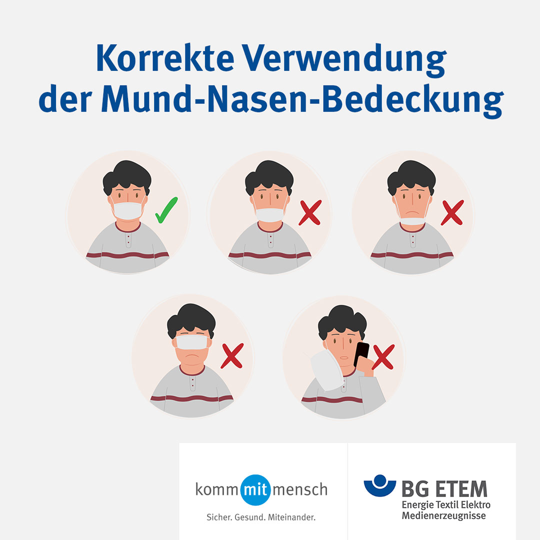 Korrekte Verwendung der Mund-Nasen-Bedeckung