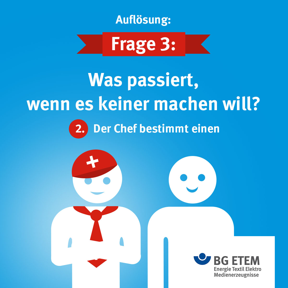 Wenn sich keiner freiwillig meldet, dann kann der Unternehmer auch jemanden bestimmen. Und dagegen kann man sich auch kaum wehren, denn Beschäftigte sind laut Arbeitsschutzgesetz und DGUV Vorschrift dazu verpflichtet, als Ersthelfer zur Verfügung zu stehen. Einzige Ausnahme: persönliche Gründe wie z. B. Behinderungen.