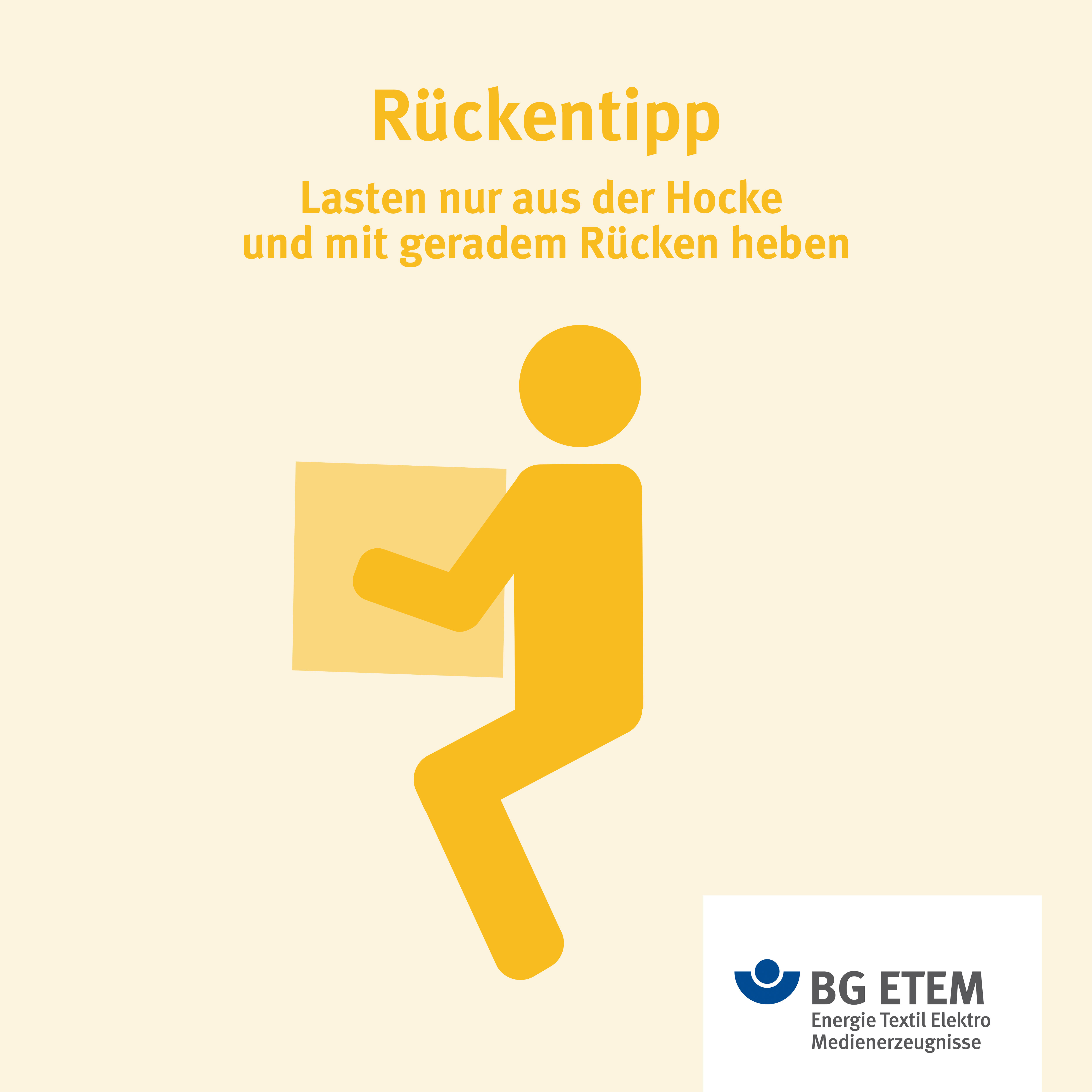 Die hier veröffentlichten Grafiken sind urheberrechtlich geschützt. Mitgliedsbetriebe der BG ETEM können sie für innerbetriebliche Zwecke nutzen (z. B. Gesundheitstage, Schulungen zur Arbeitssicherheit, etc).