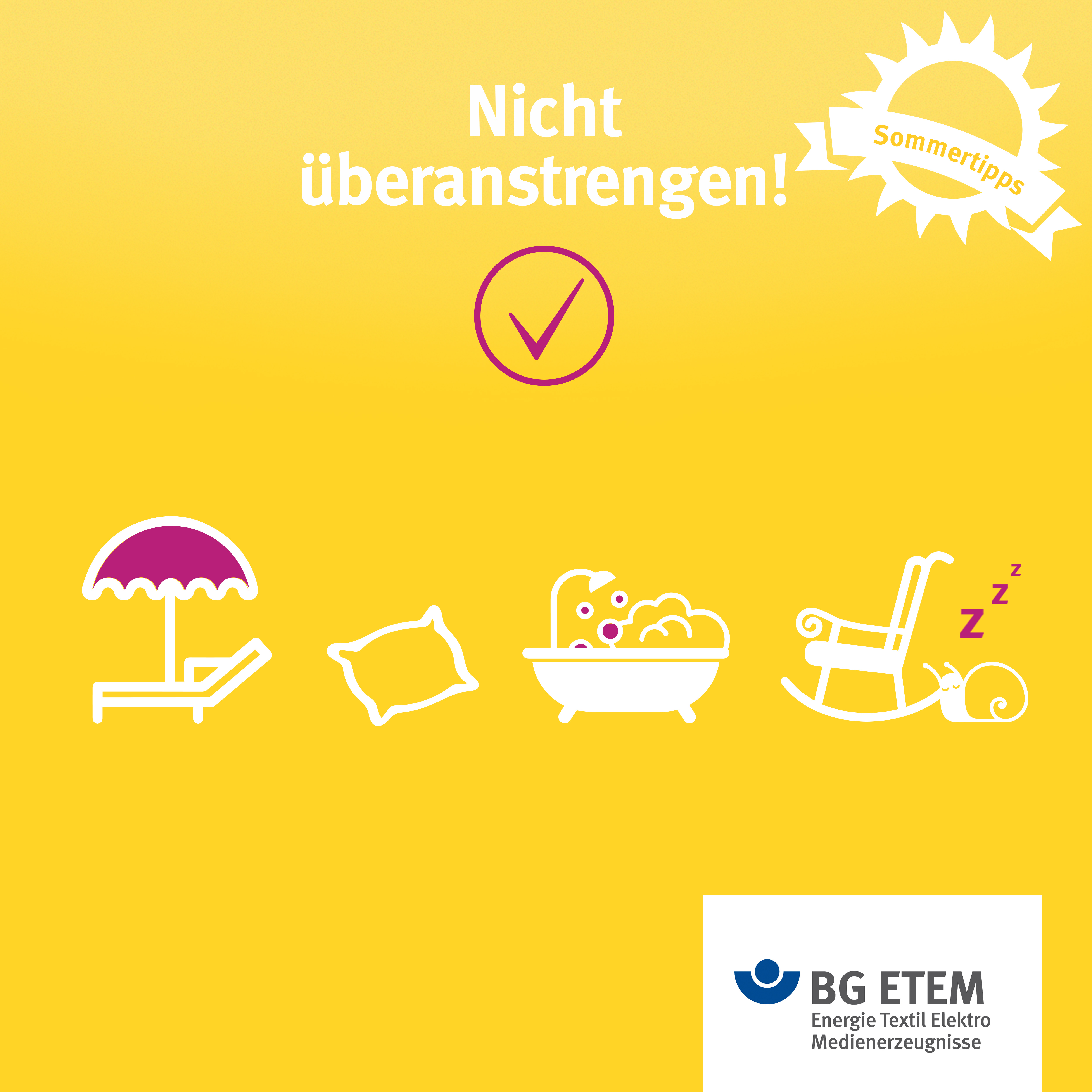 Die hier veröffentlichten Grafiken sind urheberrechtlich geschützt. Mitgliedsbetriebe der BG ETEM können sie für innerbetriebliche Zwecke nutzen (z. B. Gesundheitstage, Schulungen zur Arbeitssicherheit, etc).