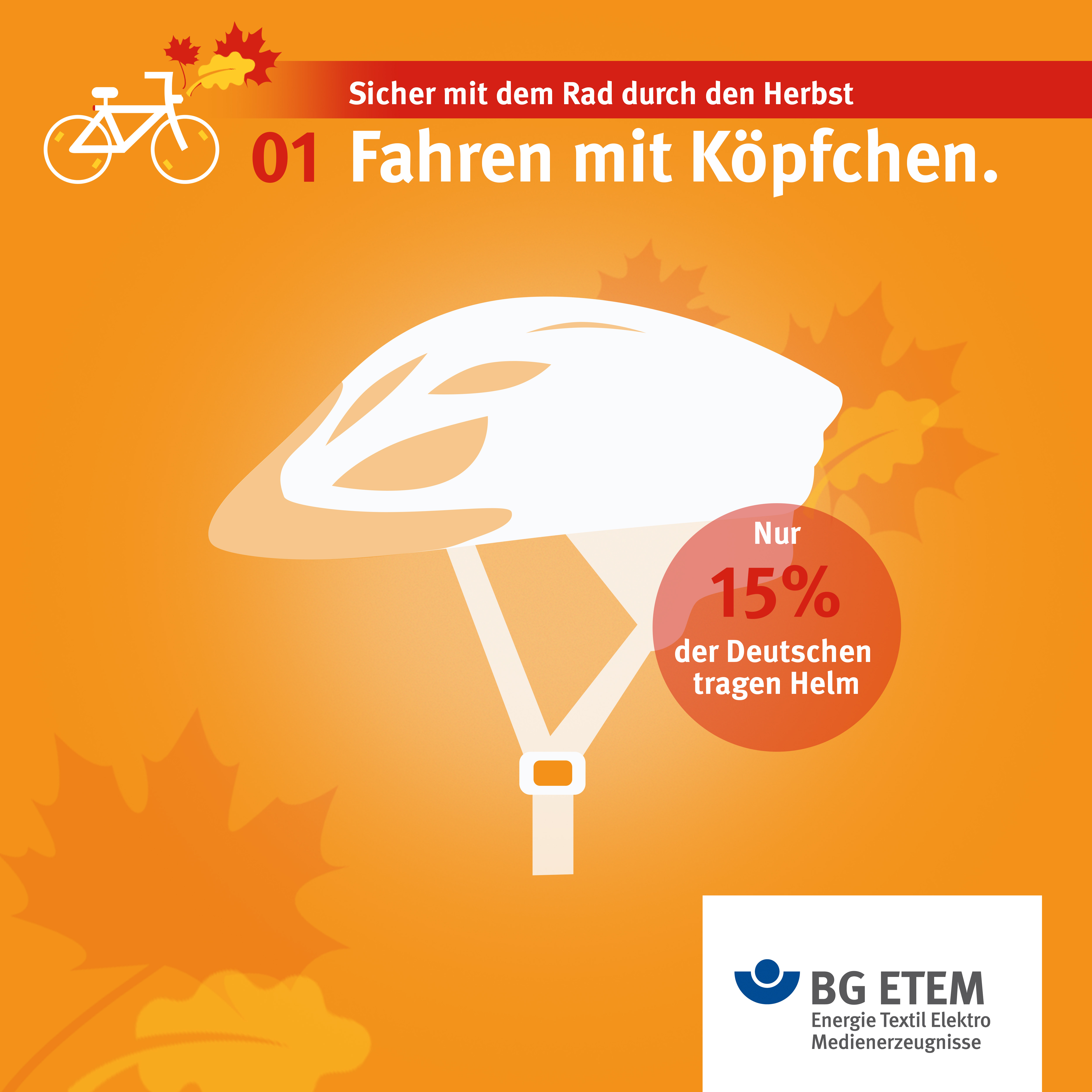 Serie: „Sicher mit dem Rad durch den Herbst“: Nicht nur in der kalten Jahreszeit, sondern immer wichtig: der Fahrradhelm. Schon beim kleinsten Riss muss der Helm sofort ersetzt werden. Und vor allem sollte er auch getragen werden. Was selbstverständlich klingt, ist leider nicht so. Denn aktuell beträgt die Helmtragequote von Fahrradhelmen in Deutschland nur 15 Prozent. Also auch im Herbst und Winter mit Köpfchen fahren.