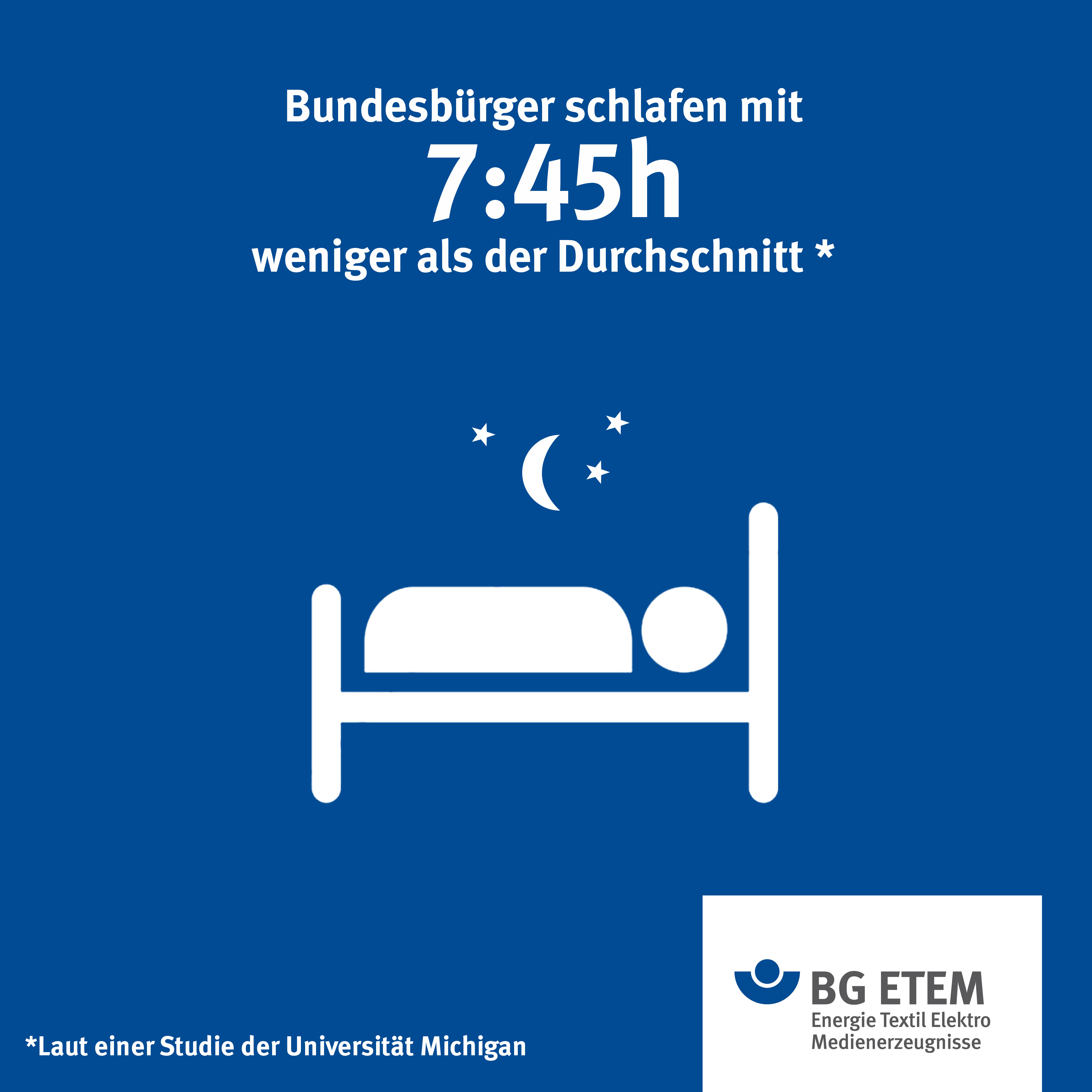 Laut einer Studie der Universität Michigan schlafen die Bundesbürger im internationalen Vergleich mit sieben Stunden 45 Minuten weniger als der Durchschnitt. Dabei warnen Forscher vor dauerhaft zu wenig Schlaf. Denn Schlafmangel macht funktional betrunken: Die Reaktionsfähigkeit sinkt und es besteht die Gefahr des Sekundenschlafs. Ideal sind sieben bis neun Stunden Schlaf. Und wie sieht‘s bei euch aus: wie lange schlaft ihr?