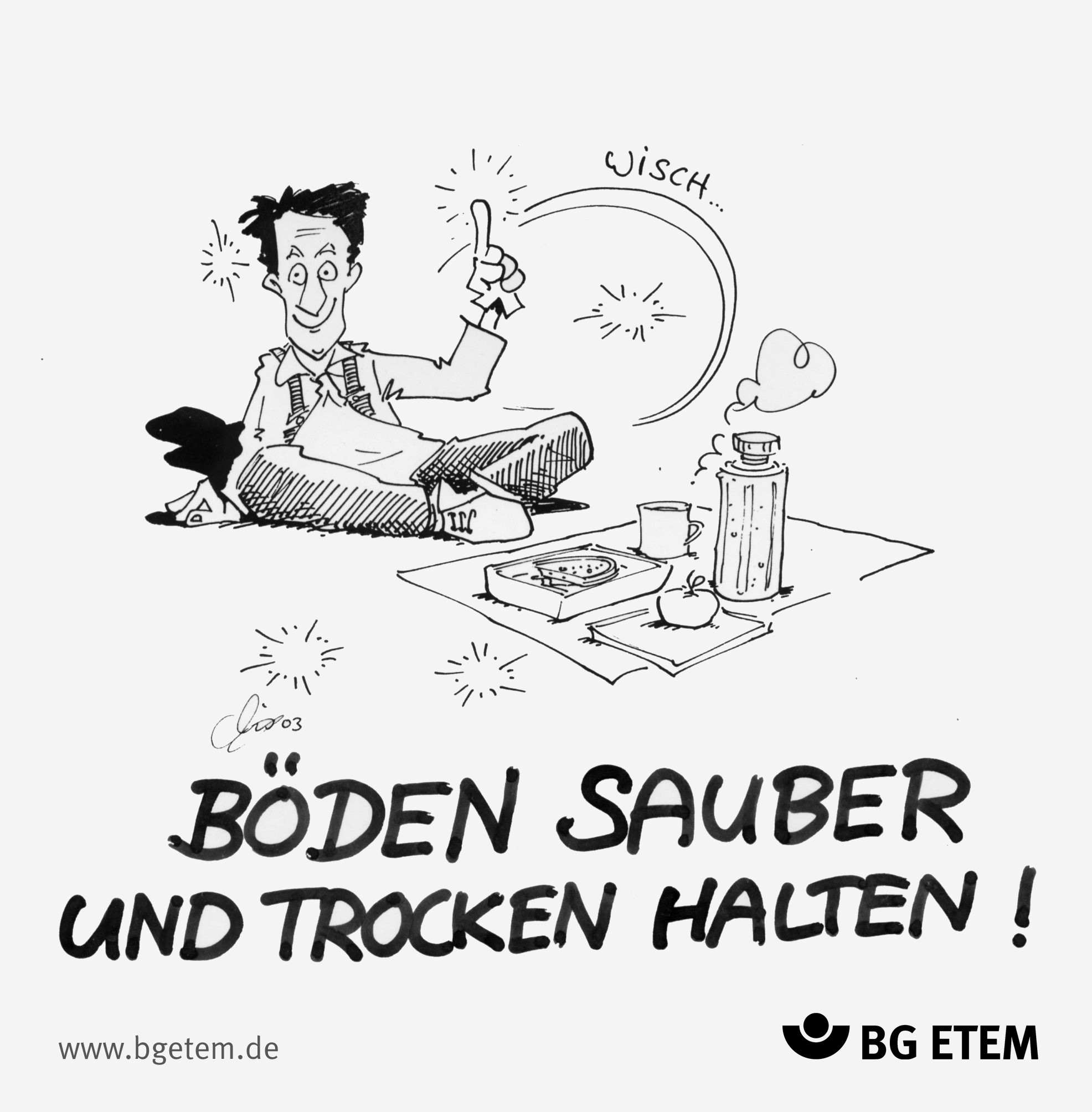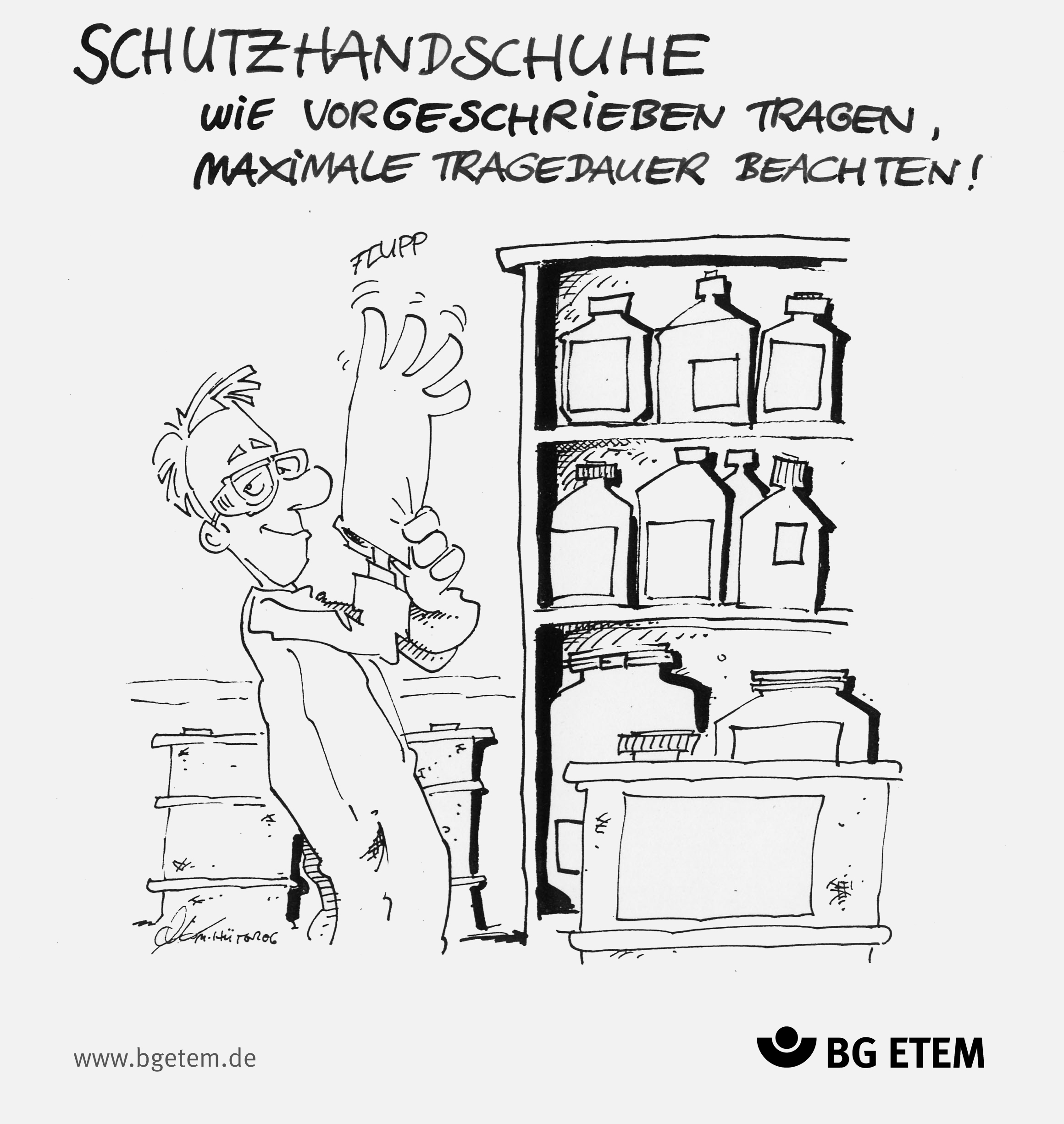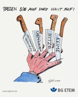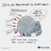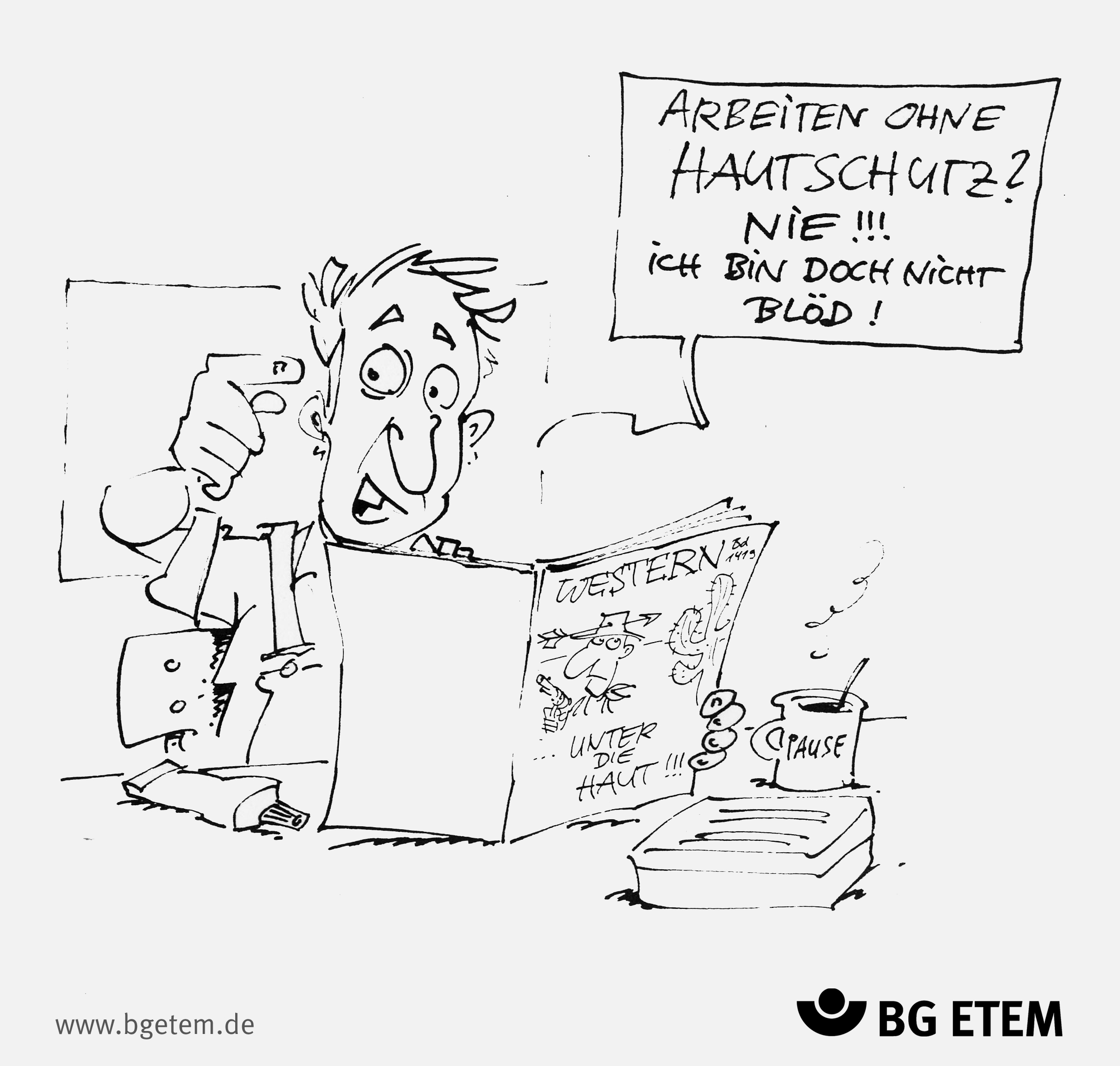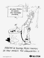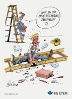 Nutzungsbedingungen: Die Karikaturen sind urheberrechtlich geschützt. Mitgliedsbetriebe der BG ETEM können die Karikaturen für innerbetriebliche Zwecke nutzen (z. B. Gesundheitstage, Schulungen zur Arbeitssicherheit, etc). Jegliche kommerzielle Nutzung, ob direkt oder indirekt, sowie öffentliche Verbreitung (z. B. Print oder online) sind nicht gestattet.