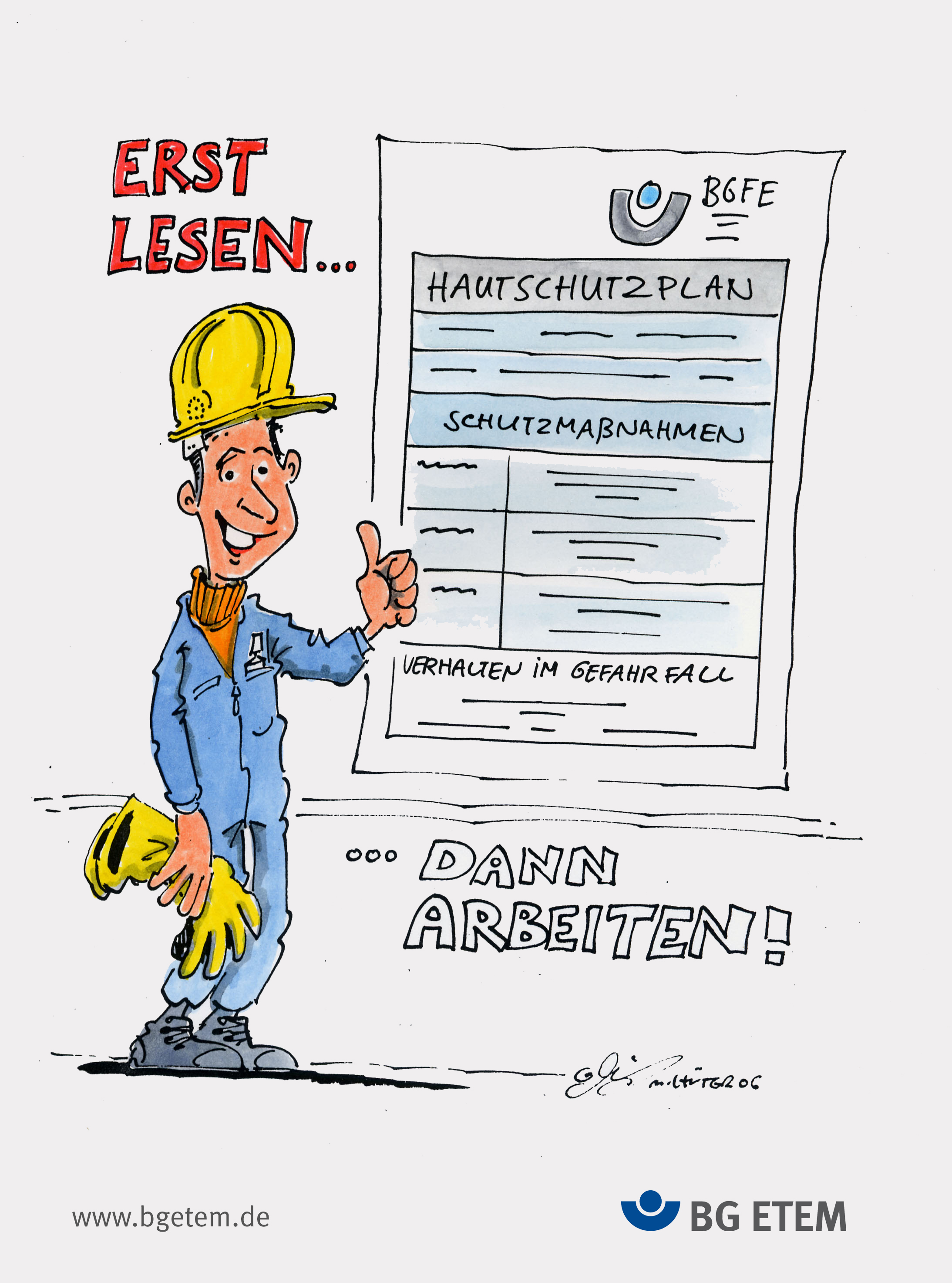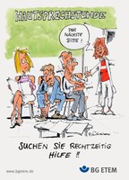 Natürlich ist Arbeitsschutz eine ernste Sache - wer wüsste das besser als die Berufsgenossenschaft? Und dennoch! Diese Karikaturen sind ein Blickfang, der auf heitere Weise richtiges Verhalten vermittelt. Ob Schutzausrüstung, Hautschutz oder ganz allgemeine Tipps zur Sicherheit und Gesundheit am Arbeitsplatz - Die Karikaturen zeigen Arbeitssicherheit einmal aus anderer Perspektive.