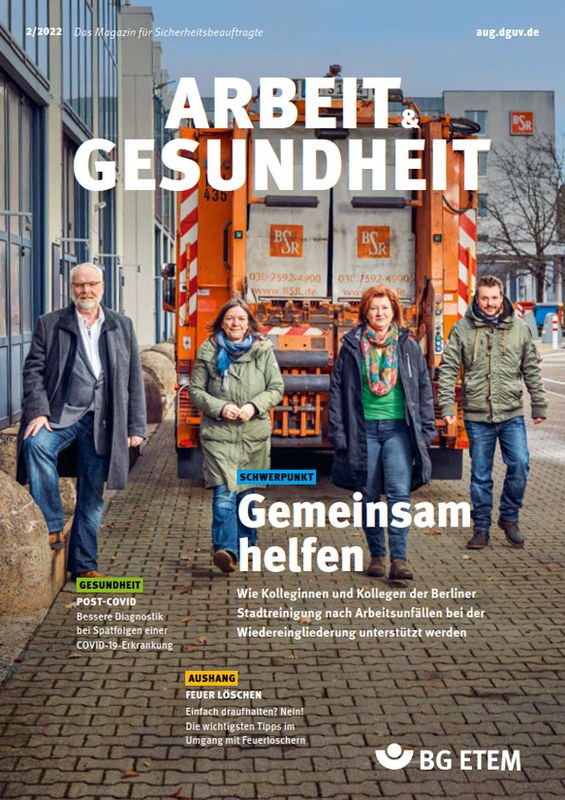 Nach einem Arbeitsunfall kann ein Beschäftigter dank Umschulung im Unternehmen bleiben. Immer an seiner Seite: ein engagiertes Team des betrieblichen Eingliederungsmanagements (BEM). Damit bei einem Brand im Betrieb niemand zu Schaden kommt, ist schnelles, kompetentes Handeln wichtig. Deshalb sollte jeder die Verhaltensregeln beim Einsatz von Feuerlöschern kennen. Stromunfällen kann man vorbeugen, indem man sich strikt an die fünf Sicherheitsregeln hält.