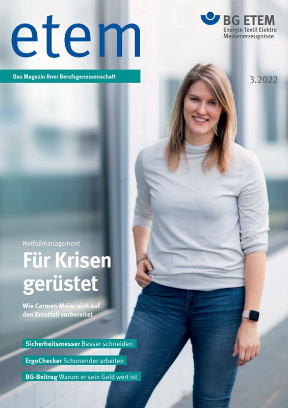 Weil auch ein kleiner Schnitt in den Finger zu einem medizinischen Notfall führen kann, sollten Beschäftigte im Umgang mit Schneidwerkzeug besonders vorsichtig sein. Oder, noch besser: Sie nutzen Sicherheitsmesser. Die gibt es passgenau für verschiedene Zwecke. Näheres erfahren Sie ebenfalls in der neuen "etem". Außerdem geht es um Pflegeleistungen der BG ETEM nach einem schweren Arbeitsunfall und die neue Handlungsanleitung "ErgoChecker", die Betriebe dabei unterstützen soll, Arbeit gesund zu gestalten.