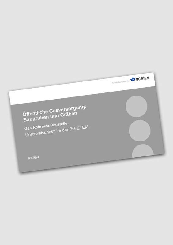 Die Unterweisungshilfe "Öffentliche Gasversorgung - Baugruben und Gräben" trägt die Bestellnummer PU088 und kann über www.bgetem.de, Webcode M24434495 aufgerufen werden.