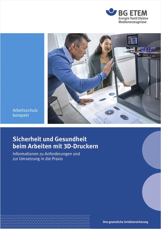 Das 3D-Drucken ist in den letzten Jahren sehr beliebt geworden: Objekte lassen sich, als individuelles Einzelobjekt oder in Kleinserien, schnell und einfach herstellen. Doch auch Sicherheit und Gesundheit müssen mit dieser Entwicklung Schritt halten. Die neue Broschüre "Sicherheit und Gesundheit beim Arbeiten mit 3D-Druckern" der BG ETEM stellt verschiedene 3D-Druckverfahren vor. Sie gibt Hinweise, was beim Kauf einer Maschine zu beachten ist, welche Gefährdungen es beim Einsatz gibt und welche Schutzmaßnahmen zu ergreifen sind. Illustrationen veranschaulichen unterschiedliche Druckverfahren. Verweise auf weitere Publikationen und Websites bieten die Möglichkeit zur vertiefenden Information.