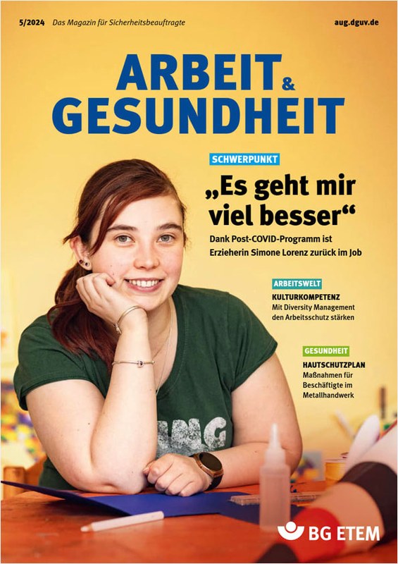Wie nach COVID-19 Langzeitfolgen auch dank einer Reha-Managerin die Rückkehr in den Arbeitsalltag gelang, ist ein Schwerpunktthema der Ausgabe. Ladungssicherung ist wichtig: Verschiedene Arten des Zurrens werden vorgestellt. Damit Schweiß, Schmutz und Schmierstoffe in Metallbetrieben keine Hauterkrankungen auslösen, ist ein Hautschutzplan der erste Schritt. Wie es Sicherheitsbeauftragten mit gezielten Gesprächsstrategien gelingt, auch mal "Nein" zu sagen, wenn sie mit zu vielen Aufgaben betraut werden, findet sich in der Ausgabe. Außerdem: Wie die Berliner Wasserbetriebe dank eines Einstiegsqualifizierungsprogramm Menschen mit Migrationshintergrund erfolgreich an Bord holen.