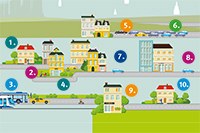 Eine Illustration zeigt übersichtlich, welchen Schutz die BG ETEM ihren Versicherten auf dem Arbeitsweg bietet.