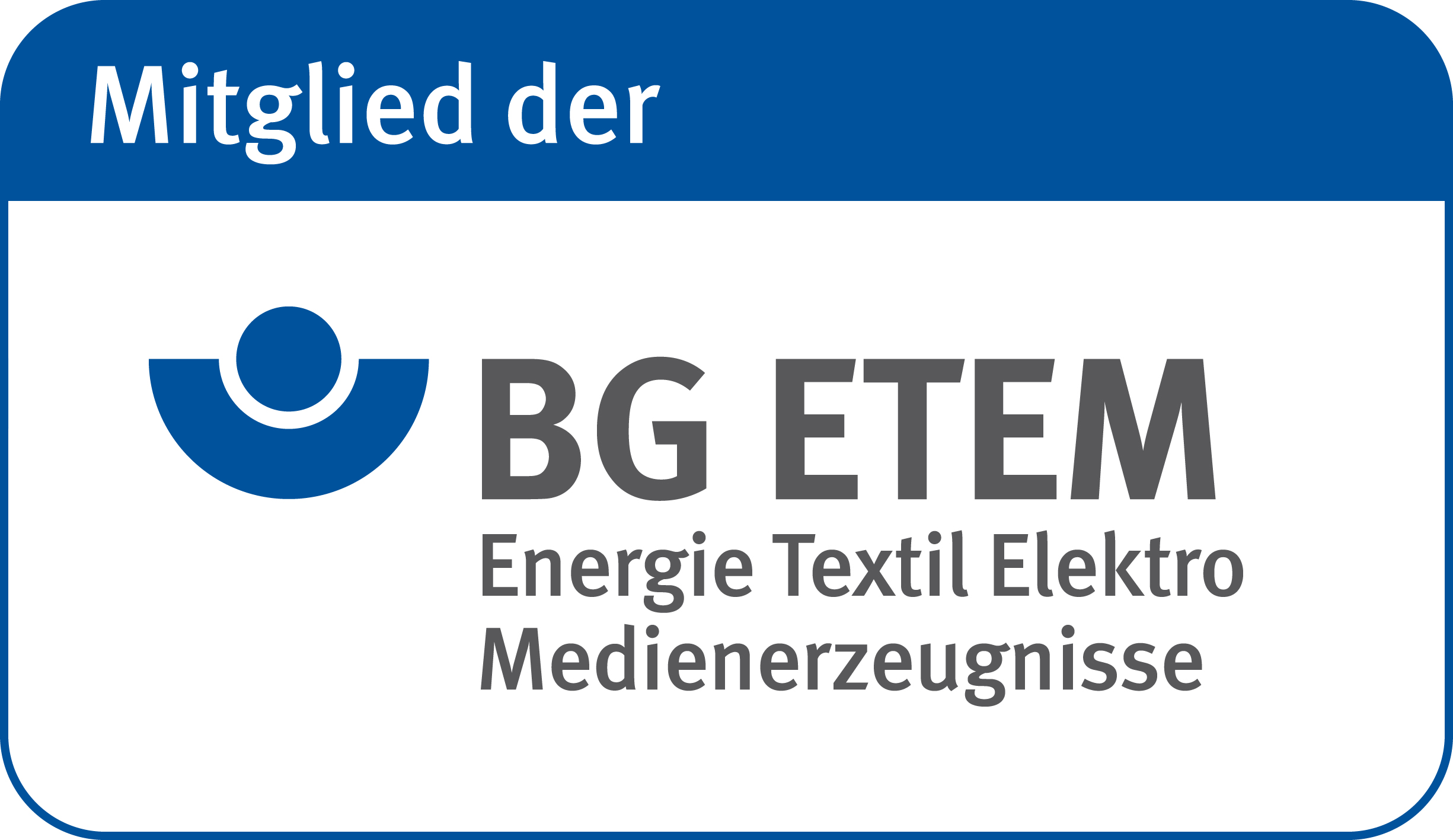 In Druckmedien oder auf Webseiten können Sie mit diesem Zeichen Ihre Mitgliedschaft bei der BG ETEM anzeigen. Mitgliedsbetriebe der BG ETEM dürfen das Zeichen in unveränderter Form ohne weitere Genehmigung einsetzen. Der Einsatz zu werblichen Zwecken ist ausgeschlossen.