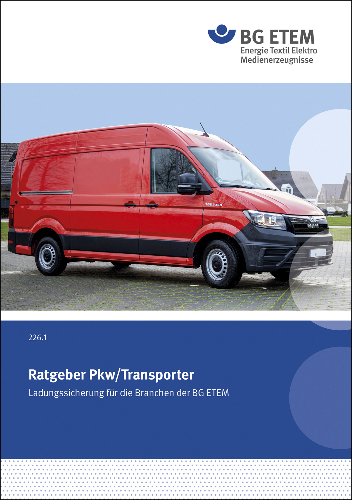 Auch in PKW und Transportern gilt, dass die Ladung so verstaut und gesichert werden muss, dass sie selbst bei einer Vollbremsung nicht verrutschen, umfallen, rollen oder herabfallen kann. Dennoch führt ungesicherte Ladung immer wieder zu schweren Unfällen. Dieser Ratgeber stellt Arten und Hilfsmittel der Ladungssicherung mit Bildern und erläuternden Hinweisen vor - von ausfüllenden Hilfsmitteln über Netze und Regalsysteme bis hin zu Zurrgurten. Beispiele aus verschiedenen Branchen der BG ETEM verdeutlichen die Anwendung in der Praxis. Die Verwendung dieses Bildes ist nur in Verbindung mit der Medienankündigung und nicht zu anderen Zwecken gestattet.