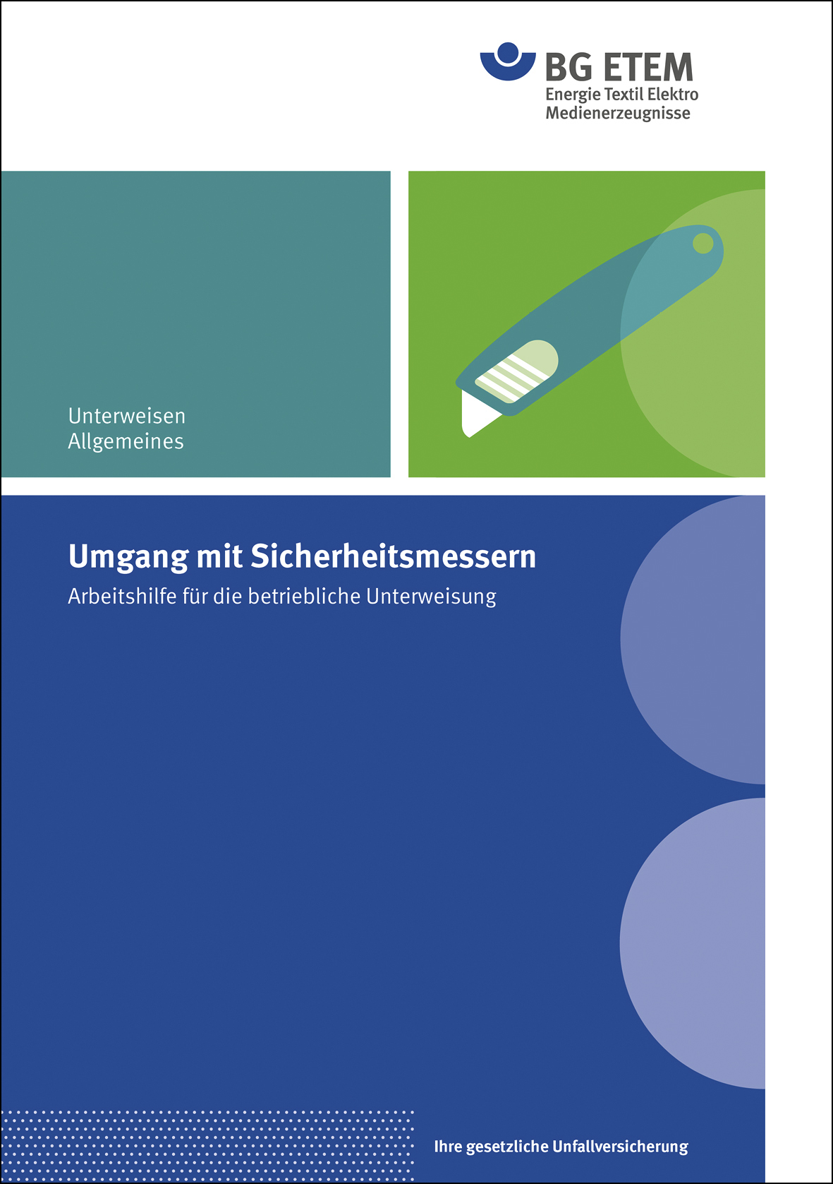 Zu Handverletzungen beim Umgang mit Messern kommt es häufig, z. B. durch das Abrutschen mit dem Messer beim Schneiden oder durch das Benutzen von ungeeigneten, stumpfen Klingen. Die neue Unterweisungshilfe der BG ETEM "Umgang mit Sicherheitsmessern" hilft, Sicherheitsmesser auszuwählen und korrekt zu handhaben. Die Verwendung dieses Bildes ist nur in Verbindung mit der Pressemitteilung und nicht zu anderen Zwecken gestattet.