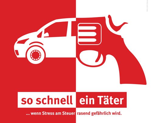 Das Zusammenspiel von zwei Bildsymbolen, die wie Piktogramme wirken, lässt sich auch mit einem flüchtigen Blick schnell erfassen. Die sprachlichen Botschaften sind knapp und prägnant formuliert. Sie unterstützen das Verständnis des Motivs und verstärken die Wirkung des Plakats.