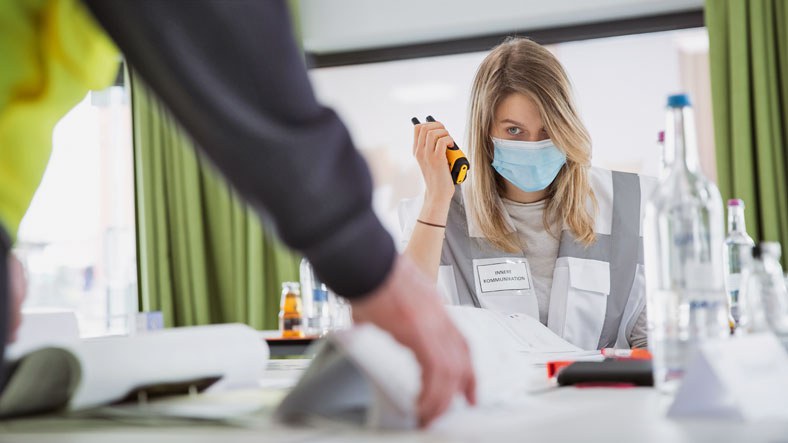 Im Seminar "Krisen- und Notfallmanagement" der BG ETEM bilden Teilnehmerinnen und Teilnehmer einen Krisenstab. Ihre Aufgabe: die Folgen eines Großbrands bewältigen.