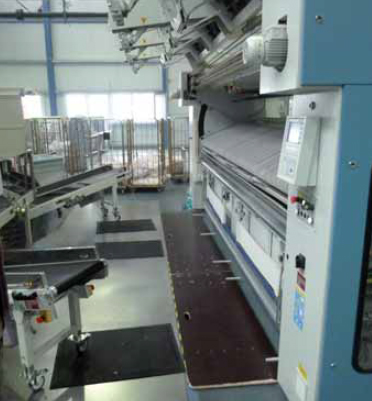 Beim Verlassen des Arbeitsplatzes müssen die Mangelgrube abgedeckt und die Zuführbänder zur Seite geschoben werden.