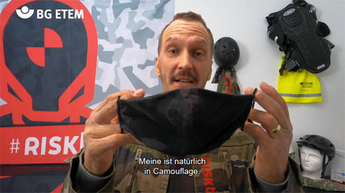 RiskBuster Holger Schumacher erklärt, wie Masken im Sinne des Infektionsschutzes korrekt angewendet werden. Die Empfehlung gilt für Alltagsmasken ebenso wie für Mund-Nasen-Schutz und Atemschutzmasken.